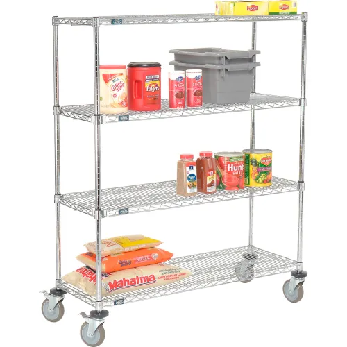 Nexel® 4 Shelf Truck, Chrome, 48"W x 18"D x 60"H, Polyurethane Casters, 4 Swivel, 2 Brake