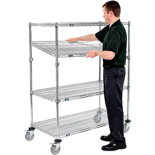 Nexel® 4 Shelf Truck, Chrome, 48"W x 24"D x 69"H, Polyurethane Casters, 4 Swivel, 2 Brake