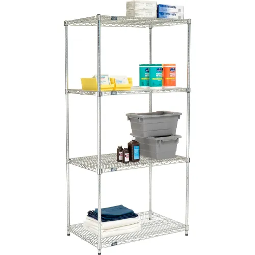 Nexel® 4 Shelf, Poly-Z-Brite® Quick Adjust Wire Shelving Unit, Starter, 36"W x 24"D x 74"H