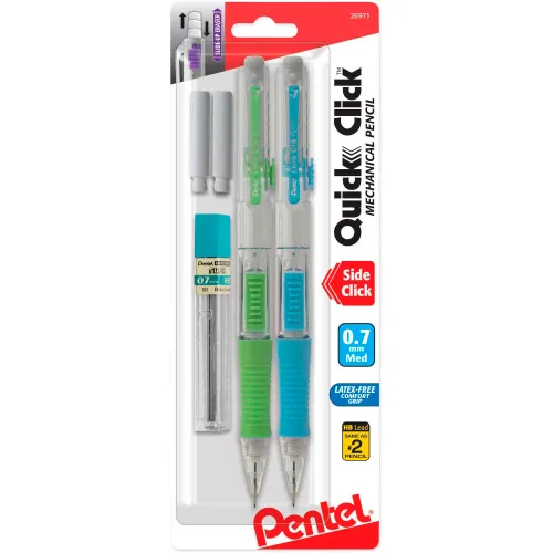 Pentel® QUICK CLICK Mechanical Pencil, 0.7 mm, HB (#2.5), Black Lead, Asstd Barrel Colors, 2/Pk