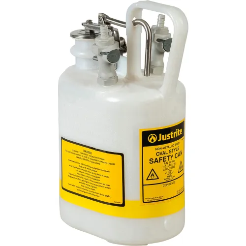 Justrite Quick-Disconnect Disposal Safety Can w/ Fittings For 3/8" Tubing, Oval, 1 Gal. Cap., White