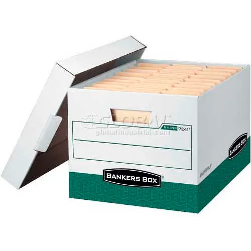 Fellowes R-Kive® Letter/Legal Storage Boxes, 15"L x 12"W x 10"H, White & Green - Pkg Qty 12