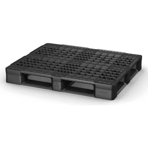 Rackable FDA Grade Plastic Open Deck Pallet, 6 Runner, 4-Way, 48" x 40", 4400 Lb Static Cap, Black