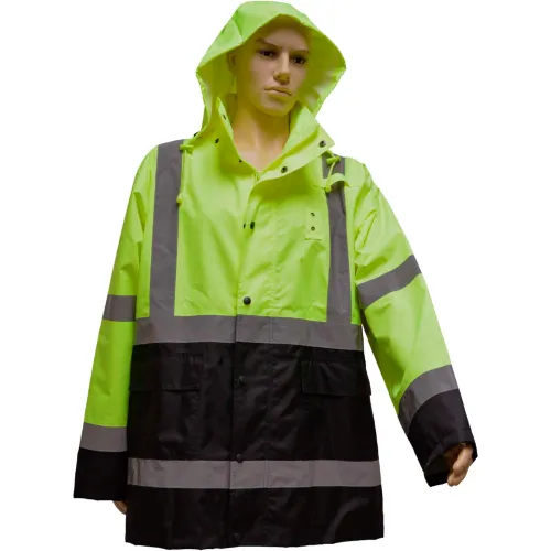 Petra Roc Rain Parka Jacket, ANSI Class 3, 300D Oxford/PU Coating, Lime/Black, 2XL