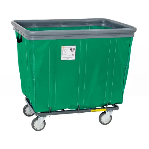 R&B Wire Products® 6 Bushel Vinyl Bumper Truck, 2 Rigid 2 Swivel Casters, Forest Green