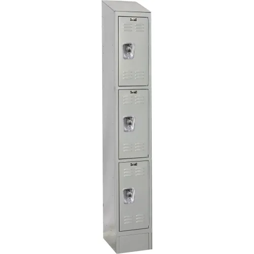 Hallowell® Ready-Built II 3-Tier 3 Door Locker, 12"W x 18"D x 84"H, Light Gray, Assembled