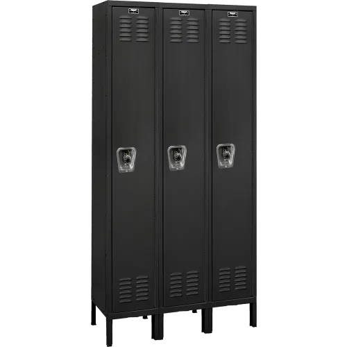 Hallowell® Ready-Built 1-Tier 3 Door Locker, 36"W x 12"D x 78"H, Black, Assembled
