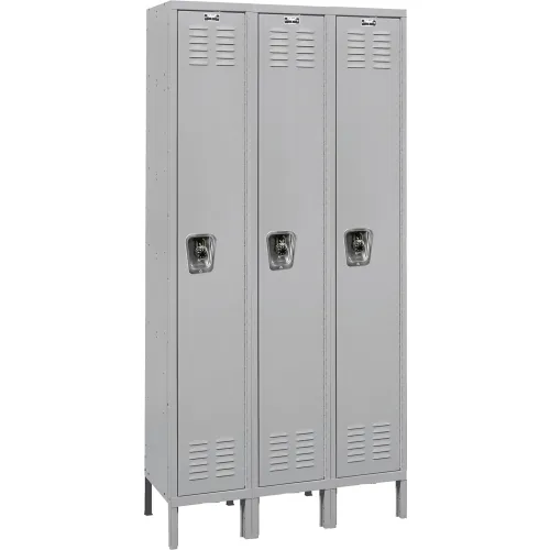Hallowell® Ready-Built 1-Tier 3 Door Locker, 36"W x 15"D x 78"H, Light Gray, Assembled