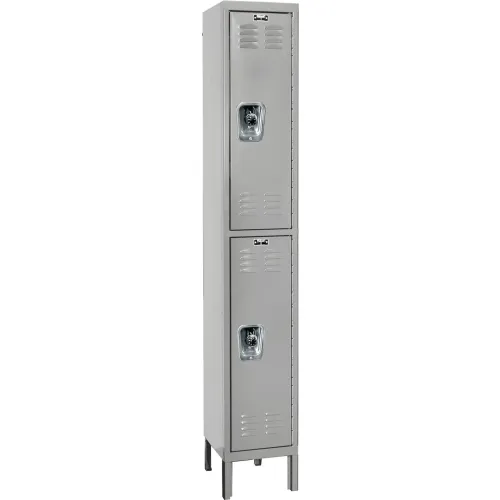 Hallowell® Ready-Built 2-Tier 2 Door Locker, 12"W x 15"D x 78"H, Light Gray, Assembled