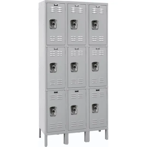 Hallowell® Ready-Built 3-Tier 9 Door Locker, 36"W x 12"D x 78"H, Light Gray, Assembled