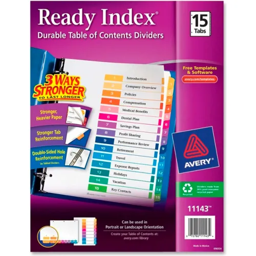 Avery® Customizable TOC Ready Index Multicolor Tab Dividers, 15-Tab, 1 to 15, 11" x 8.5"