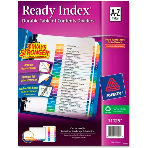 Avery® Customizable TOC Ready Index Multicolor Tab Dividers, 26-Tab, A to Z, 11" x 8.5"
