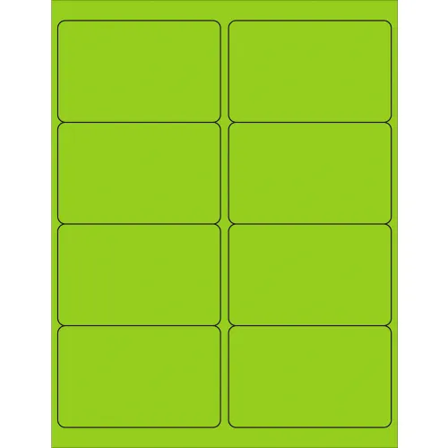 Tape Logic Rectangle Laser Labels, 2-1/2"L x 4"W, Fluorescent Green, 8 Labels/Sheet