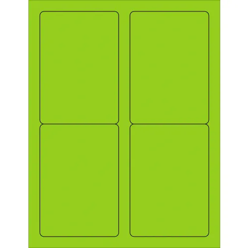 Tape Logic Rectangle Laser Labels, 5"L x 3-1/2"W, Fluorescent Green, 4 Labels/Sheet