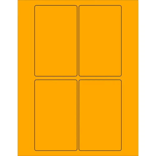 Tape Logic Rectangle Laser Labels, 5"L x 3"W, Fluorescent Orange, 4 Labels/Sheet