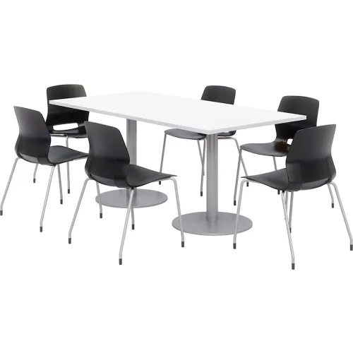 KFI Table & Chair Set, 72"Lx36"W, White Table With Black Chairs