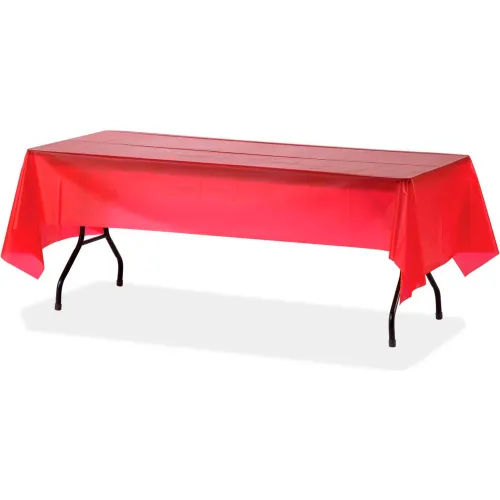 Genuine Joe® GJO10326, Rectangular Tablecover, 54"W x 108"L, Plastic, Red, 6/Pack