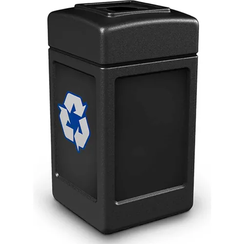 PolyTec Recycling Can w/Open Top, 42 Gallon, Black