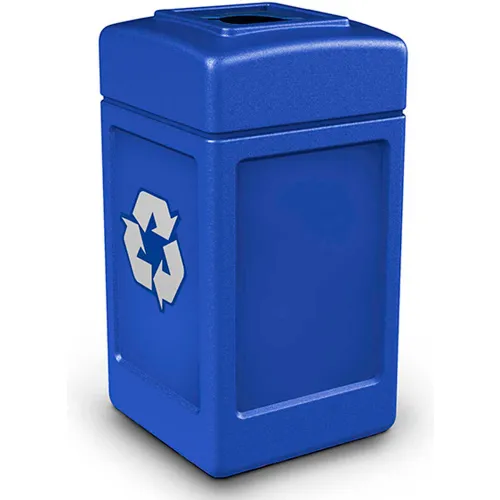 PolyTec Recycling Can w/Square Open Top, 42 Gallon, Blue
