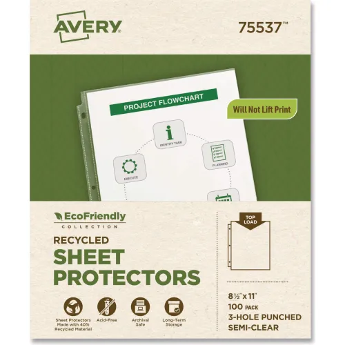 Avery® Recycled Economy Weight Sheet Protector, 8-1/2"W x 11"H, Clear, 100/PK