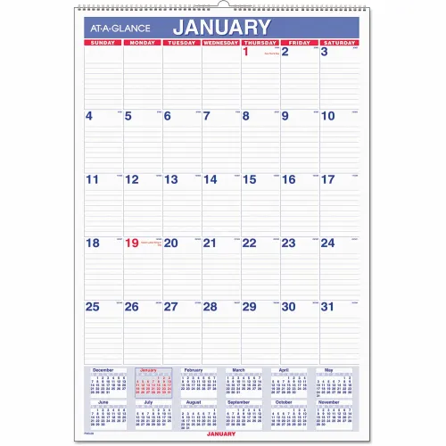 AT-A-GLANCE® Monthly Wall Calendar w/ Ruled Daily Blocks, 15.5 x 22.75, 12-Month (Jan to Dec): 2026