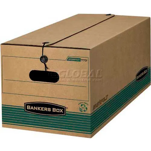 Fellowes Recycled Stor/File Legal Storage Boxes, 24"L x 15"W x 10"H, Kraft & Green - Pkg Qty 12