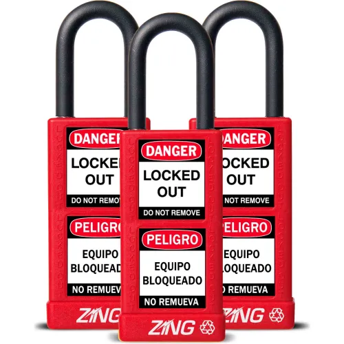 ZING RecycLock Safety Padlock, Keyed Alike, 1-1/2" Shackle, 3" Long Body, Red, 3 Pack, 7086