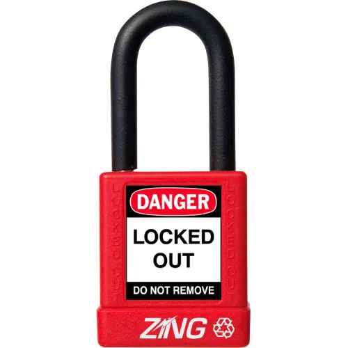 ZING RecycLock Safety Padlock, Keyed Different, 1-1/2" Shackle, 1-3/4" Body, Red, 7030
