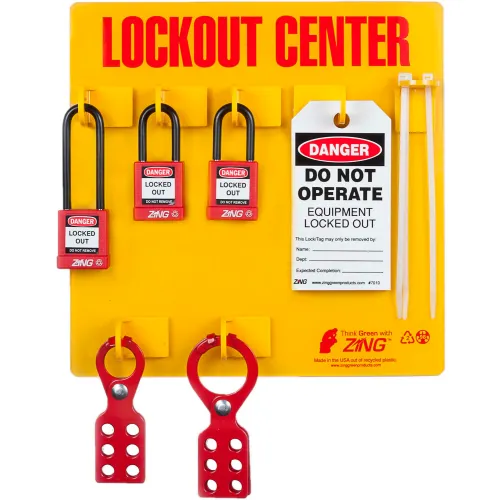 ZING RecycLockout Lockout Tagout Station, 3 Padlock, Stocked, 7113