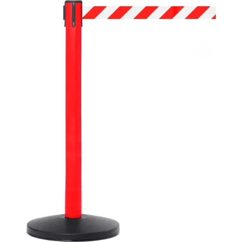 SafetyMaster 450 Retractable Belt Barrier, 40" Red Post, 7-1/2' Red/White Belt - Pkg Qty 2
