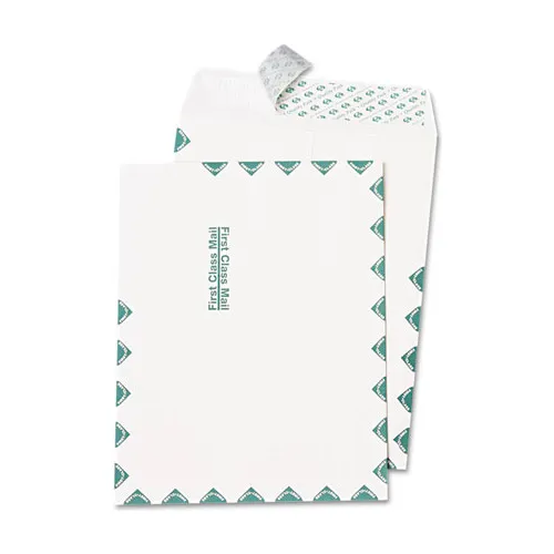 Quality Park Redi-Strip Catalog Envelopes, "First Class" Print, 10"W x 13"H, White, 100/Pack