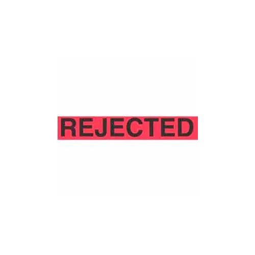 Paper Labels w/ "Rejected " Print, 2"L x 1-3/8"W, Fluorescent Red & Black, Roll of 500