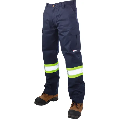 Tough Duck Relaxed Fit Twill Safety Cargo Utility Pants, 30"L Inseam x 42" Waist, Navy