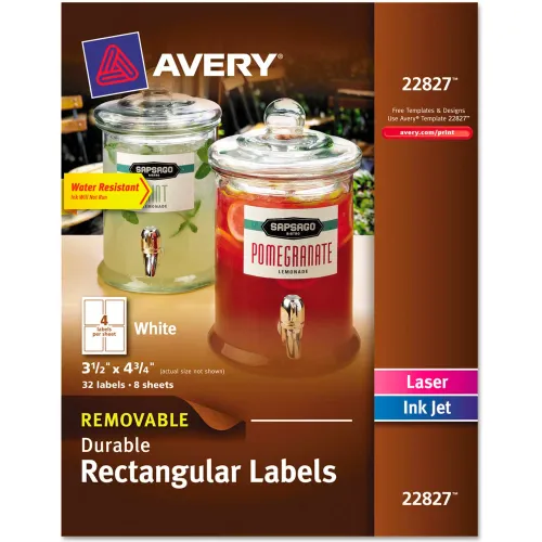 Avery® Removable Durable Labels, TrueBlock Technology, 4-3/4 x 3-1/2, White, 32/Pack