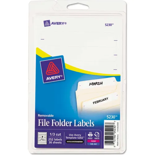 Avery® Removable Inkjet/Laser Filing Labels, 2/3 x 3-7/16, White, 252/Pack