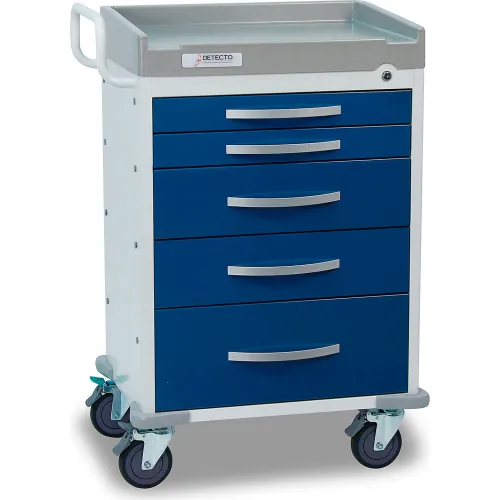 Detecto® Rescue Series Anesthesiology Medical Cart, White Frame with 5 Blue Drawers