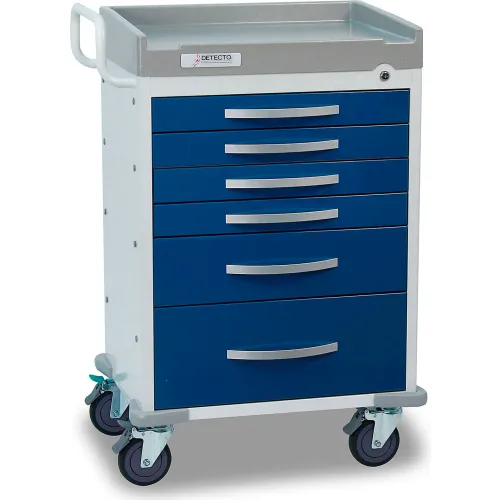 Detecto® Rescue Series Anesthesiology Medical Cart, White Frame with 6 Blue Drawers