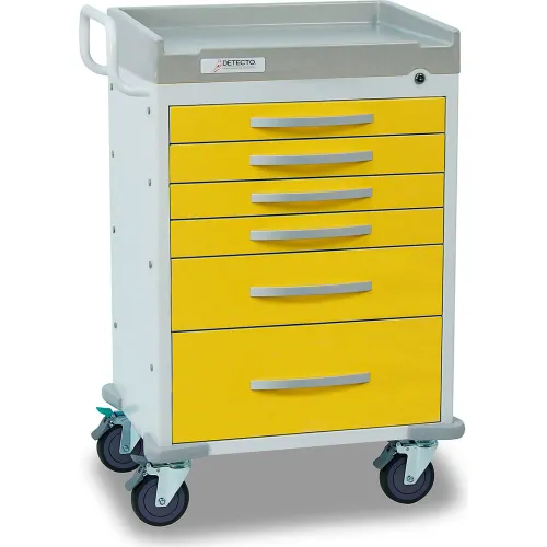 Detecto® Rescue Series Isolation Medical Cart, White Frame with 6 Yellow Drawers