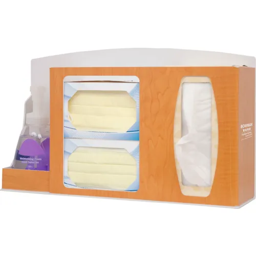 Bowman® Respiratory Hygiene Station 17.9"W x 10.5"H x 4.45"D, Maple Fauxwood