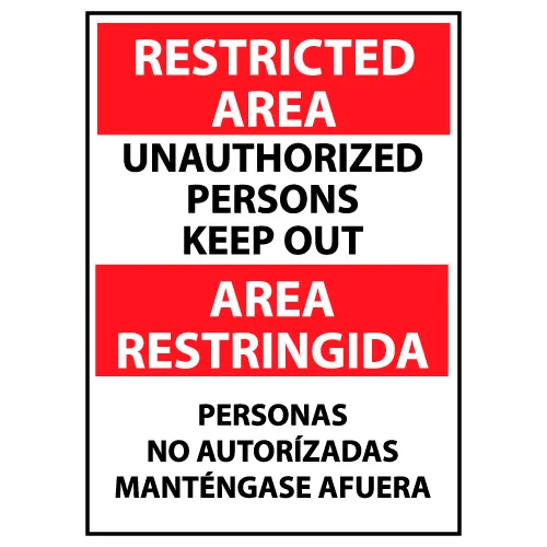 Restricted Area Plastic - Bilingual - Unauthorized Persons Keep Out