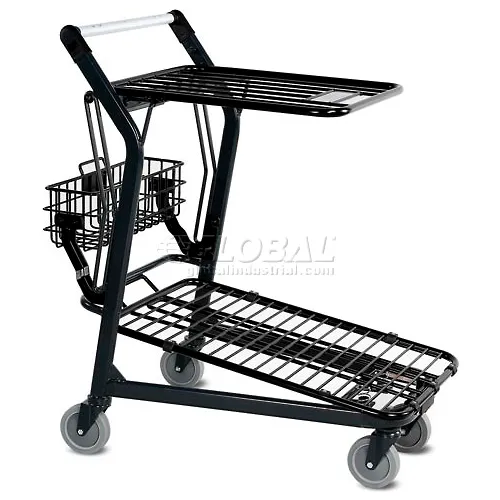 VersaCart® Retractable Flat Top Shelf Shopping Cart Dark Gray 101-580-DGY