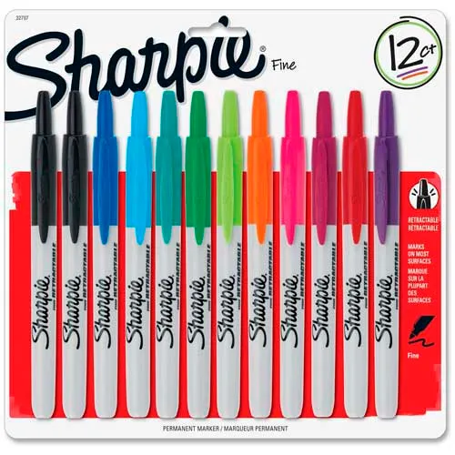 Sharpie® Retractable Permanent Marker, Fine Point, Assorted Ink, 12/Set