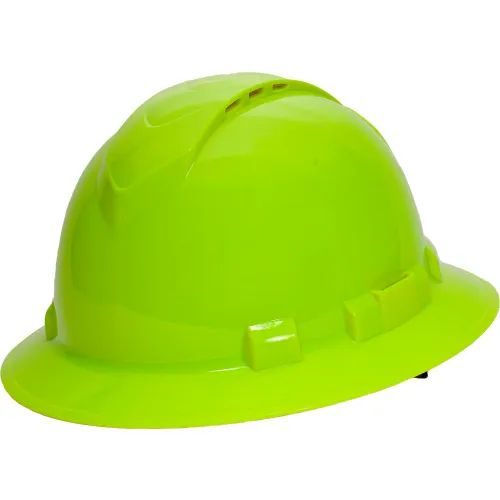 Ridgeline Full Brim Hard Hat, Hi-Vis Lime, Full Brim 4-Point Ratchet Suspension, Vented - Pkg Qty 12
