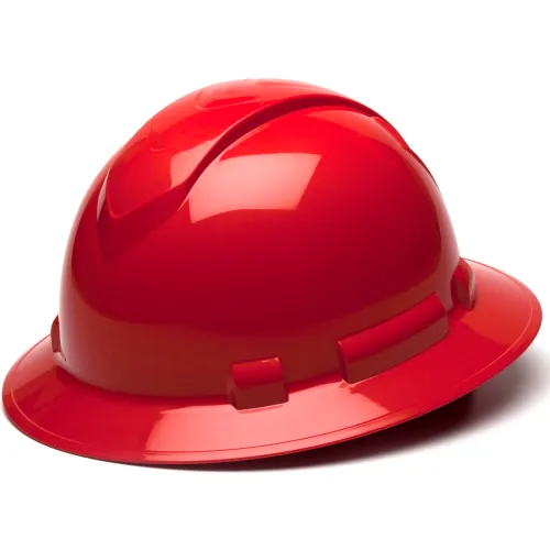 Ridgeline Full Brim Hard Hat, Red, Full Brim 4-Point Ratchet Suspension - Pkg Qty 12