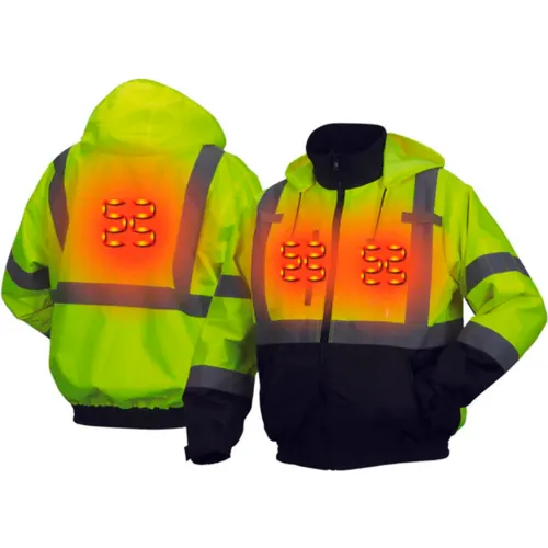 Pyramex® RJ31H Hi-Vis Heated Waterproof Bomber Jacket, Type R, ANSI Class 3, 2XL, Lime