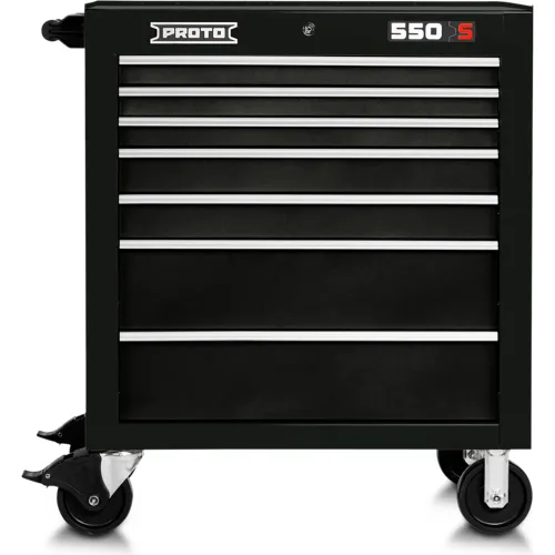 Proto® Roller Cabinet W/ 7 Drawers, 34"W x 25-1/4"D x 41"H, Black