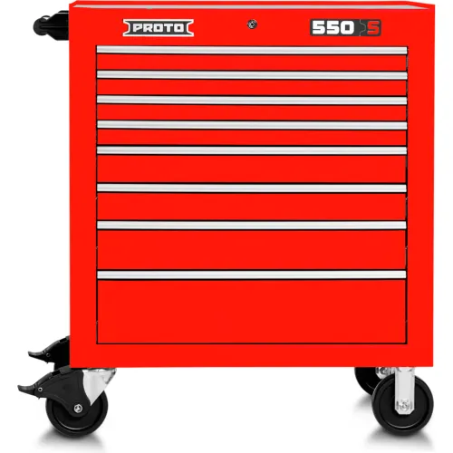 Proto® Roller Cabinet W/ 8 Drawers, 34"W x 25-1/4"D x 41"H, Red