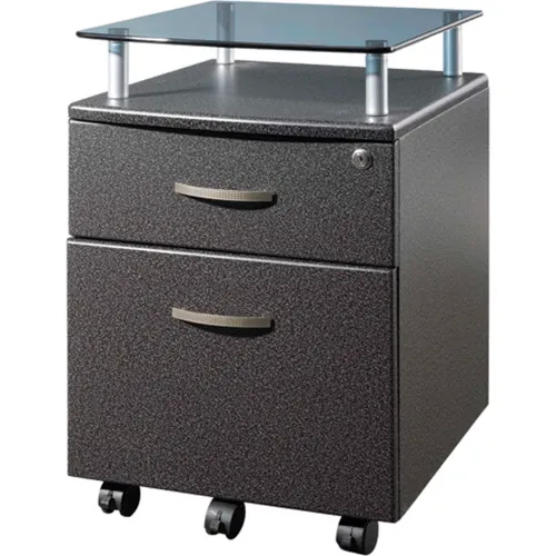Techni Mobili Rolling Glass Top File Cabinet, 14"W x 18"D x 24"H, Graphite