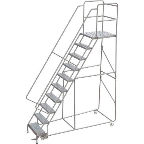 Tri-Arc Rolling Ladder, 10 Step, Aluminum, Perforated, Lock Step, 28"D Top Step, 24"W Step