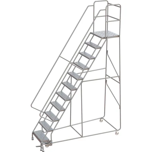 Tri-Arc Rolling Ladder, 11 Step, Aluminum, Perforated, Lock Step, 21"D Top Step, 24"W Step